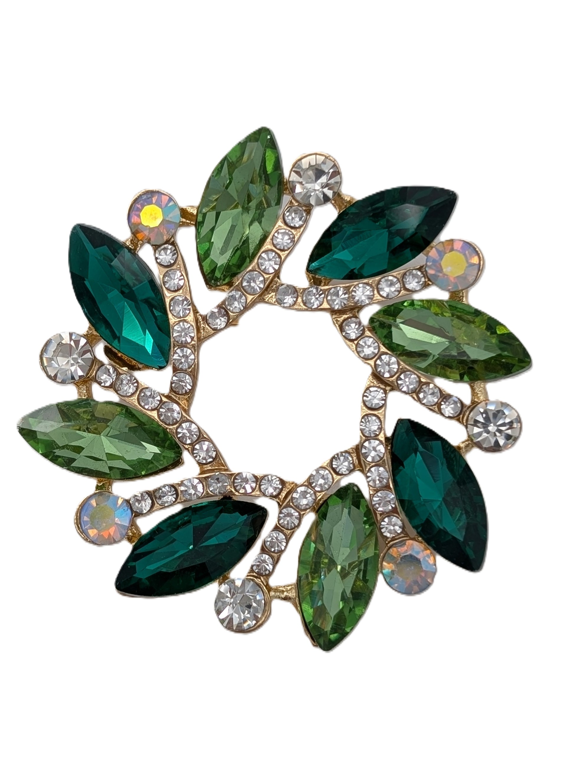 Embrace enchanting elegance with this stunning Emerald Radiance Crystal Brooch! This magnificent piece features a large, dazzling floral medallion design, intricately adorned with a captivating array of crystals and set in a luxurious golden frame. It's a statement accessory that exudes sophistication and a touch of magical allure. 💖 Size is 1.76" x 1.76"