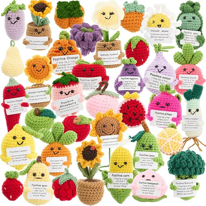 Spread instant happiness with these adorable handmade crochet emotional support dolls! Each tiny friend is a unique little vegetable or fruit designed to brighten any day and remind you to stay positive. 💖