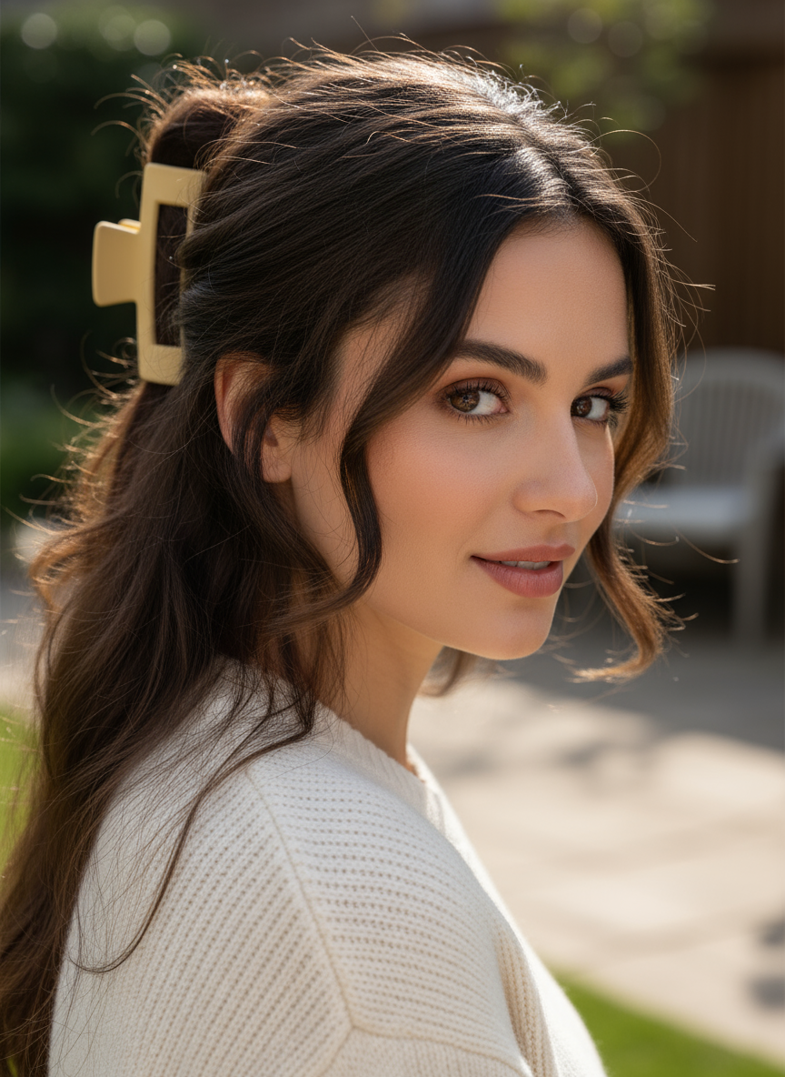 Size: Perfect medium size (3.35" / 8.5 cm) for half-up styles, casual updos, and managing daily hair. 📏