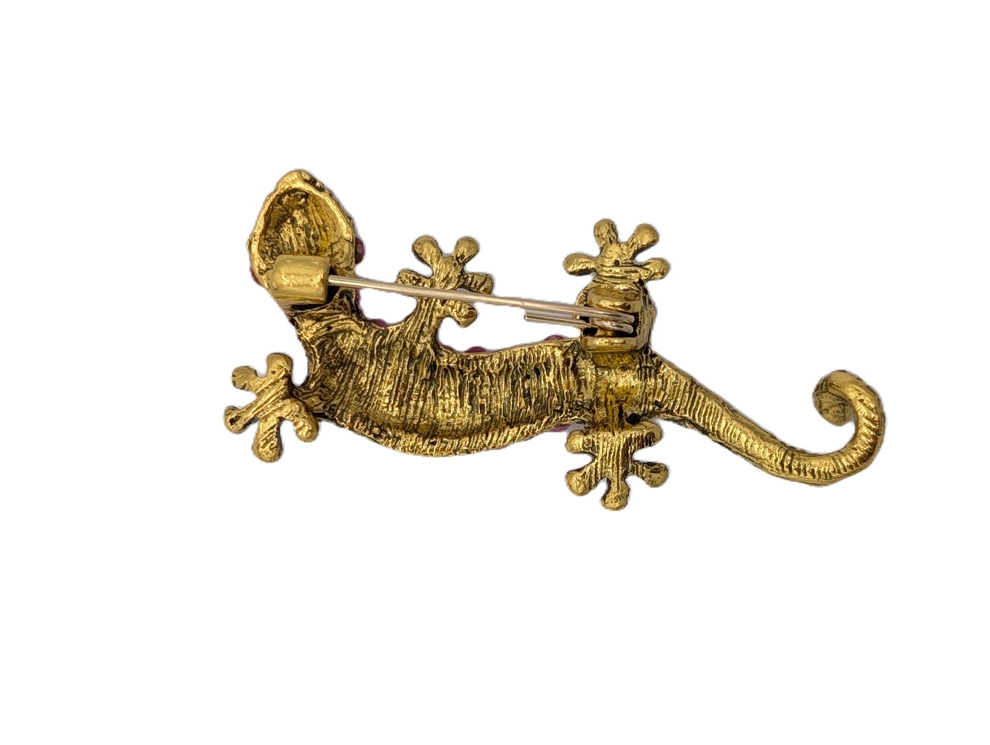 Pink & Green Crystal Gecko Brooch Pin | Antique Gold Tone Lizard Statement Jewelry