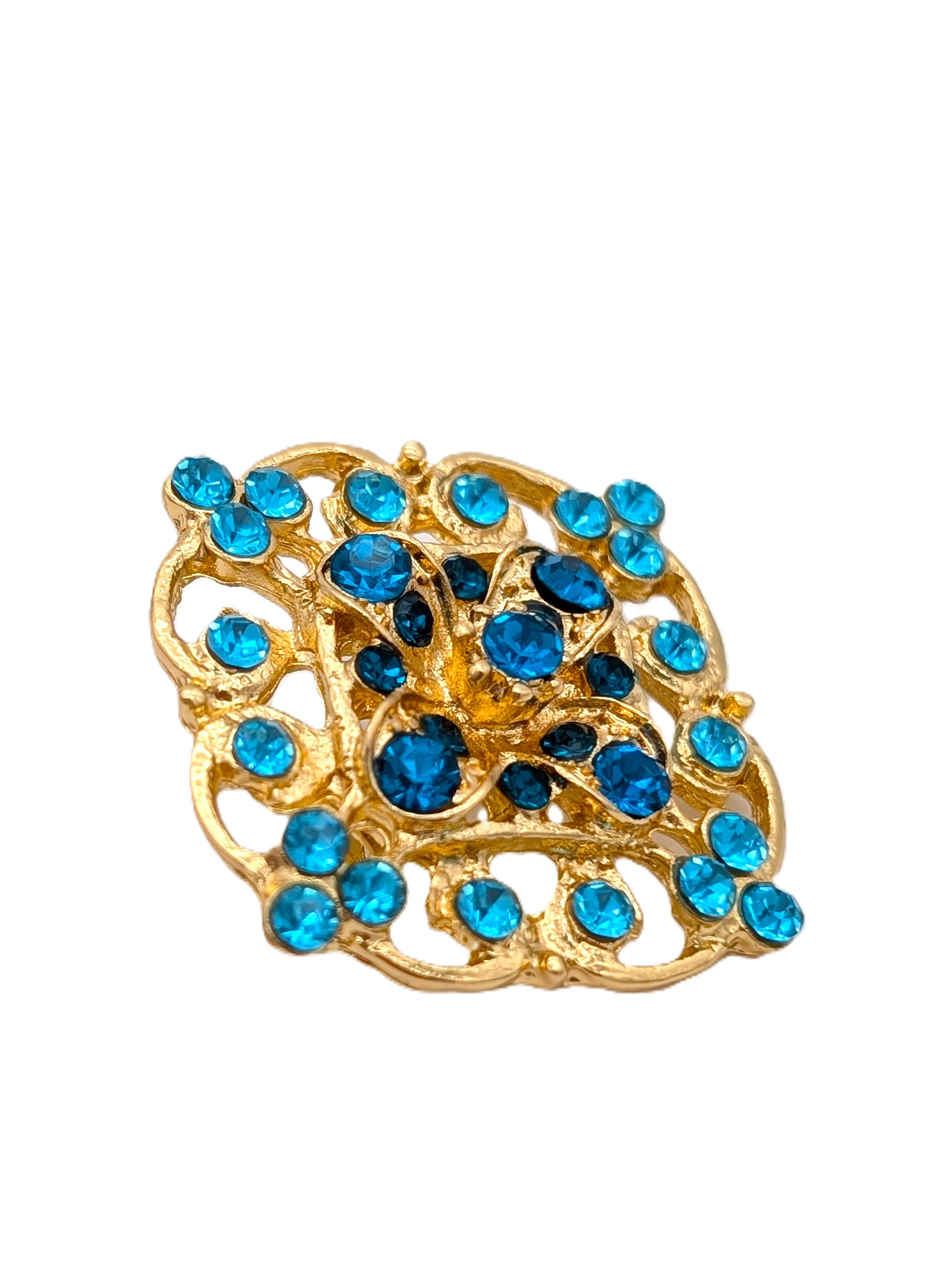 Make a refreshing and elegant statement with our captivating Ocean Sapphire Brooch. Set in a classic gold-tone setting, this piece features an ornate lattice design with a pleasing quatrefoil shape that highlights its vintage-inspired detailing.